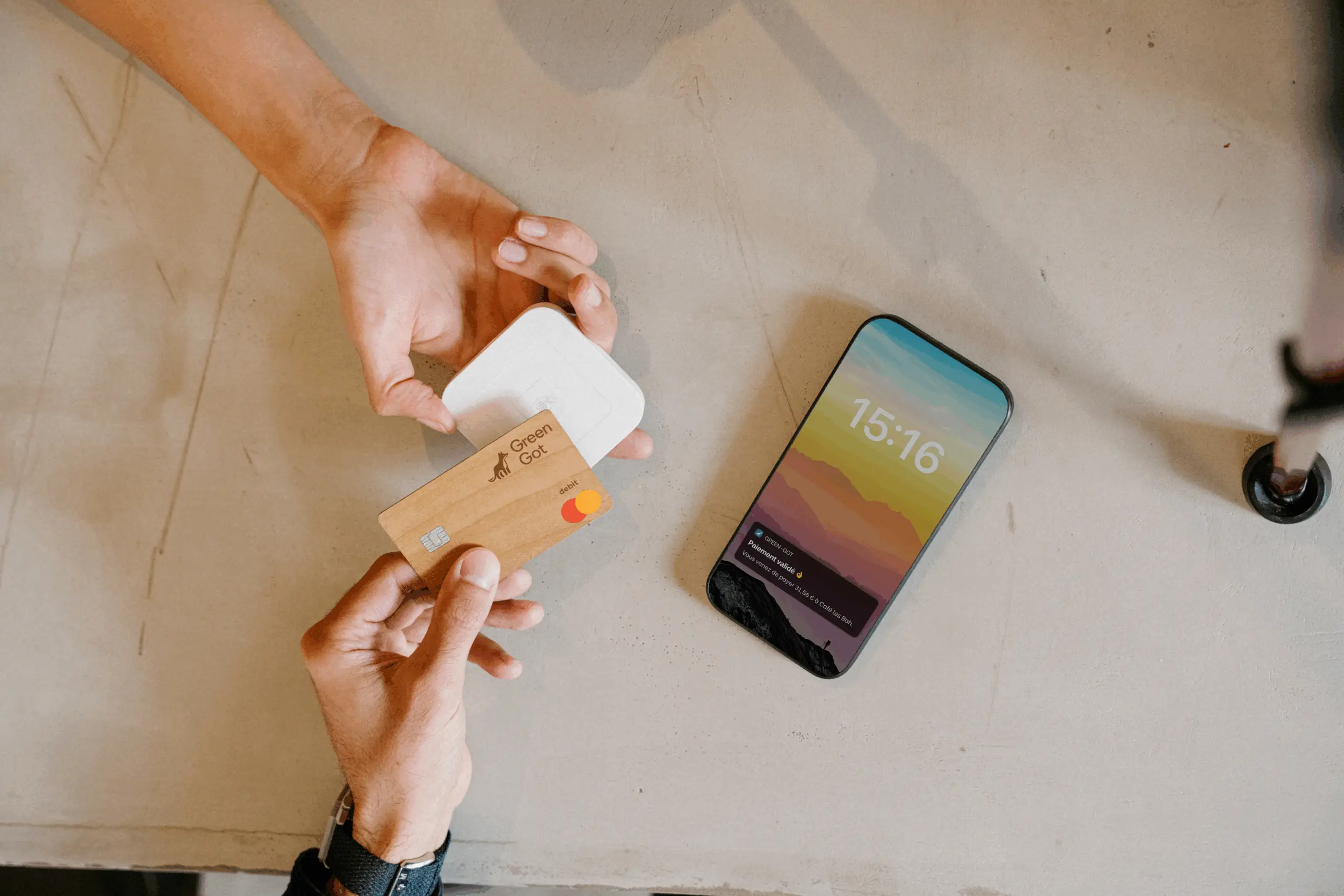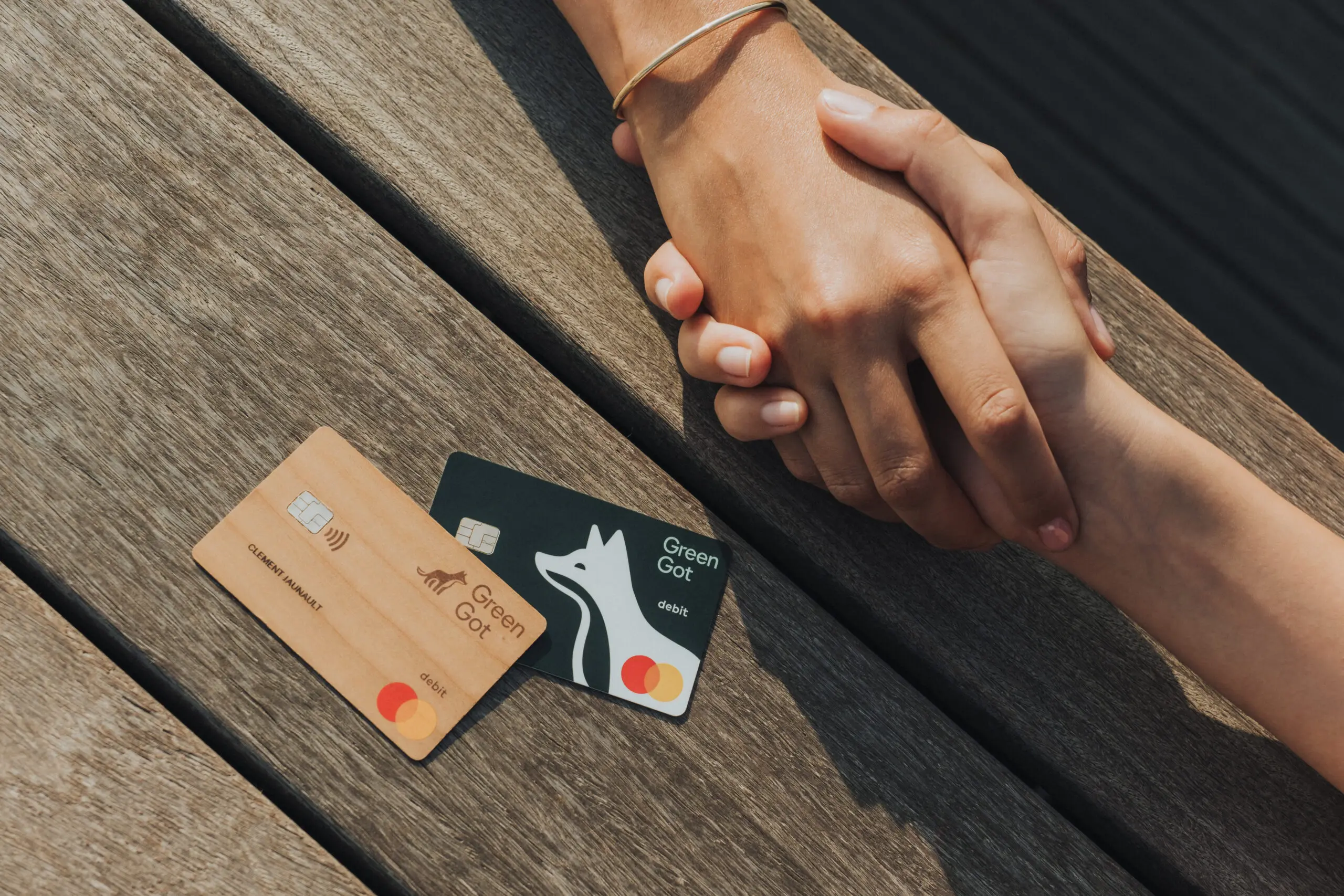 Cartes bancaires en bois ou PVC recyclé, pensées comme des objets du quotidien à faible impact.