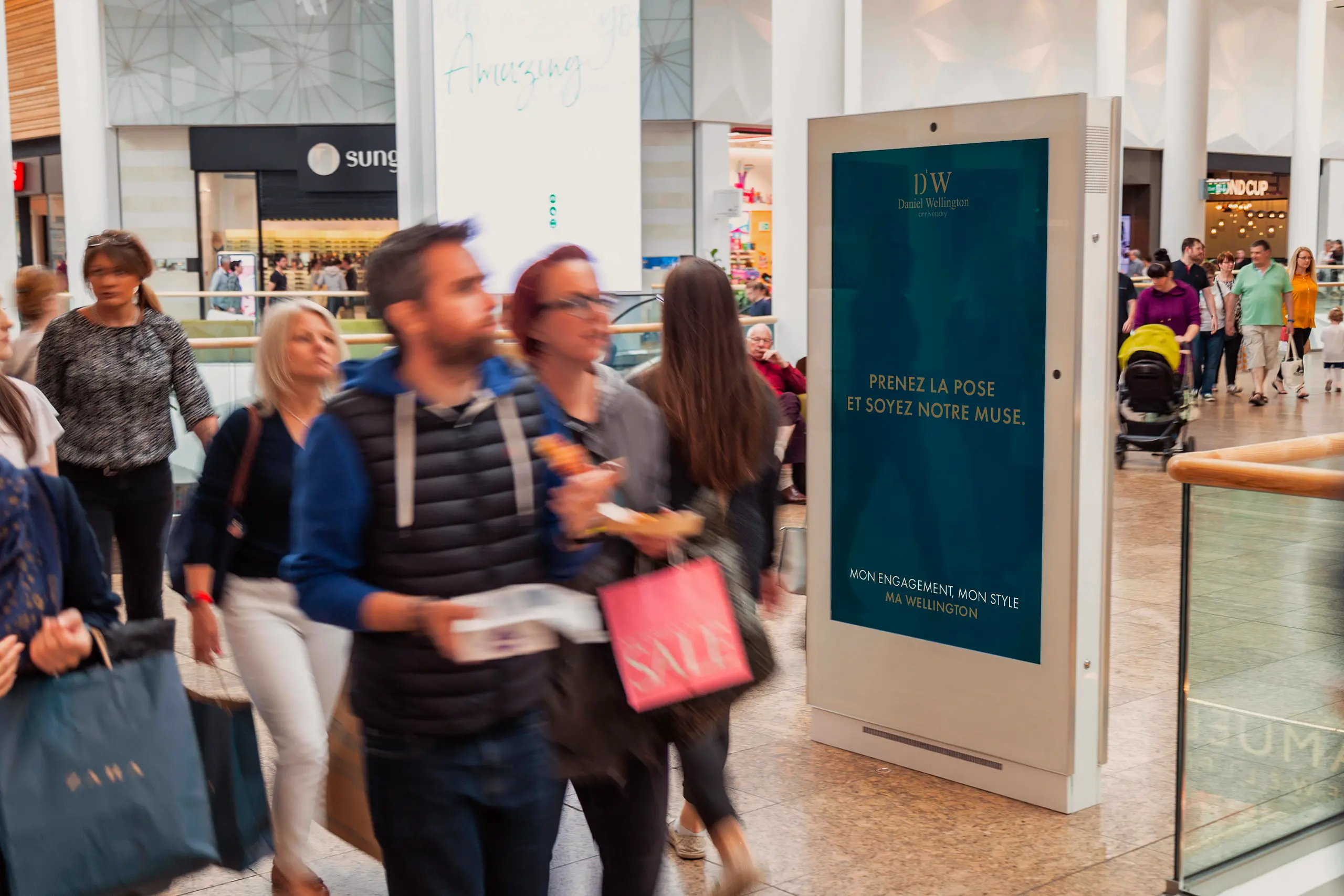 - Affichage digital interactif (DOOH) dans des centres commerciaux