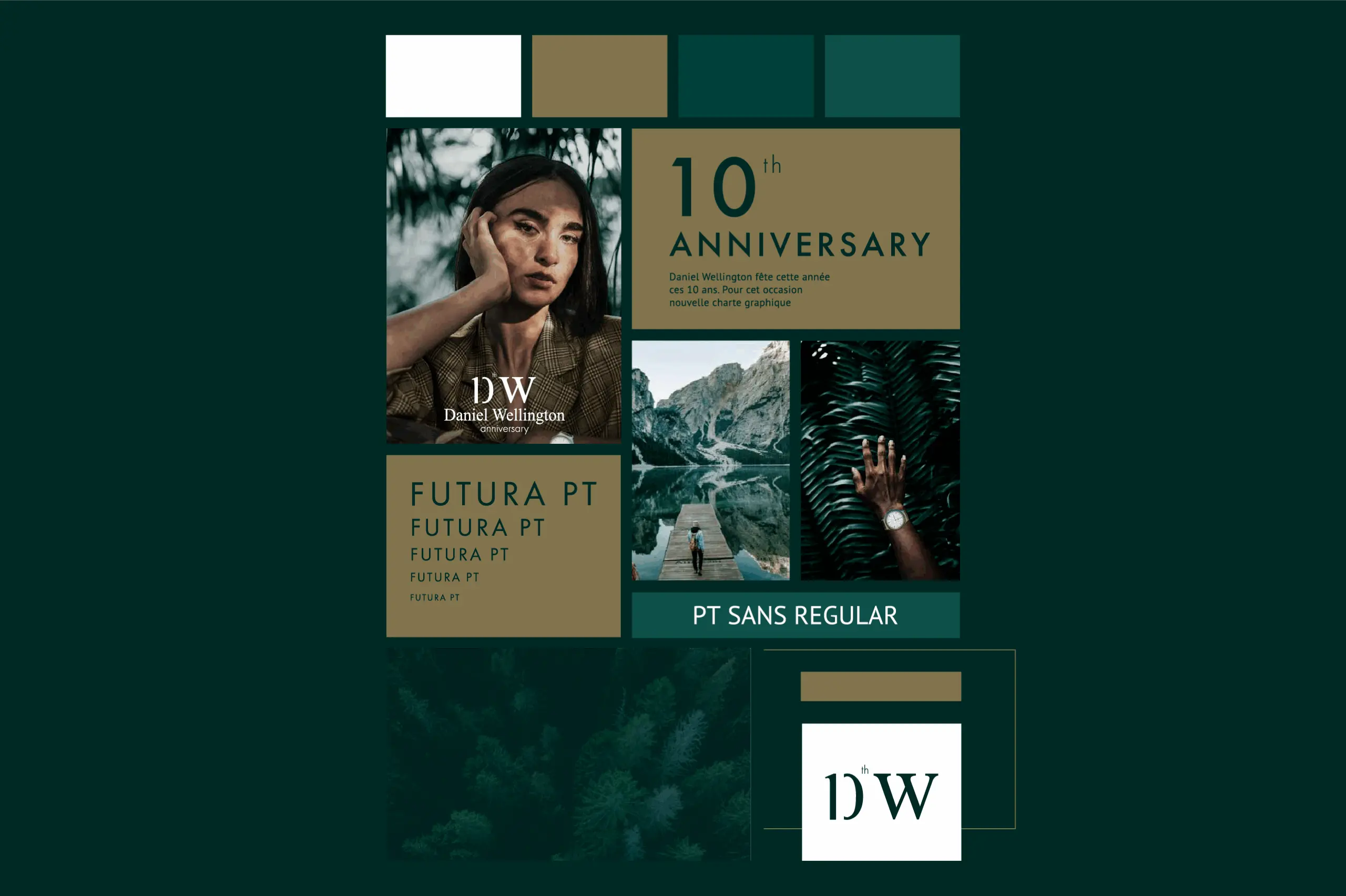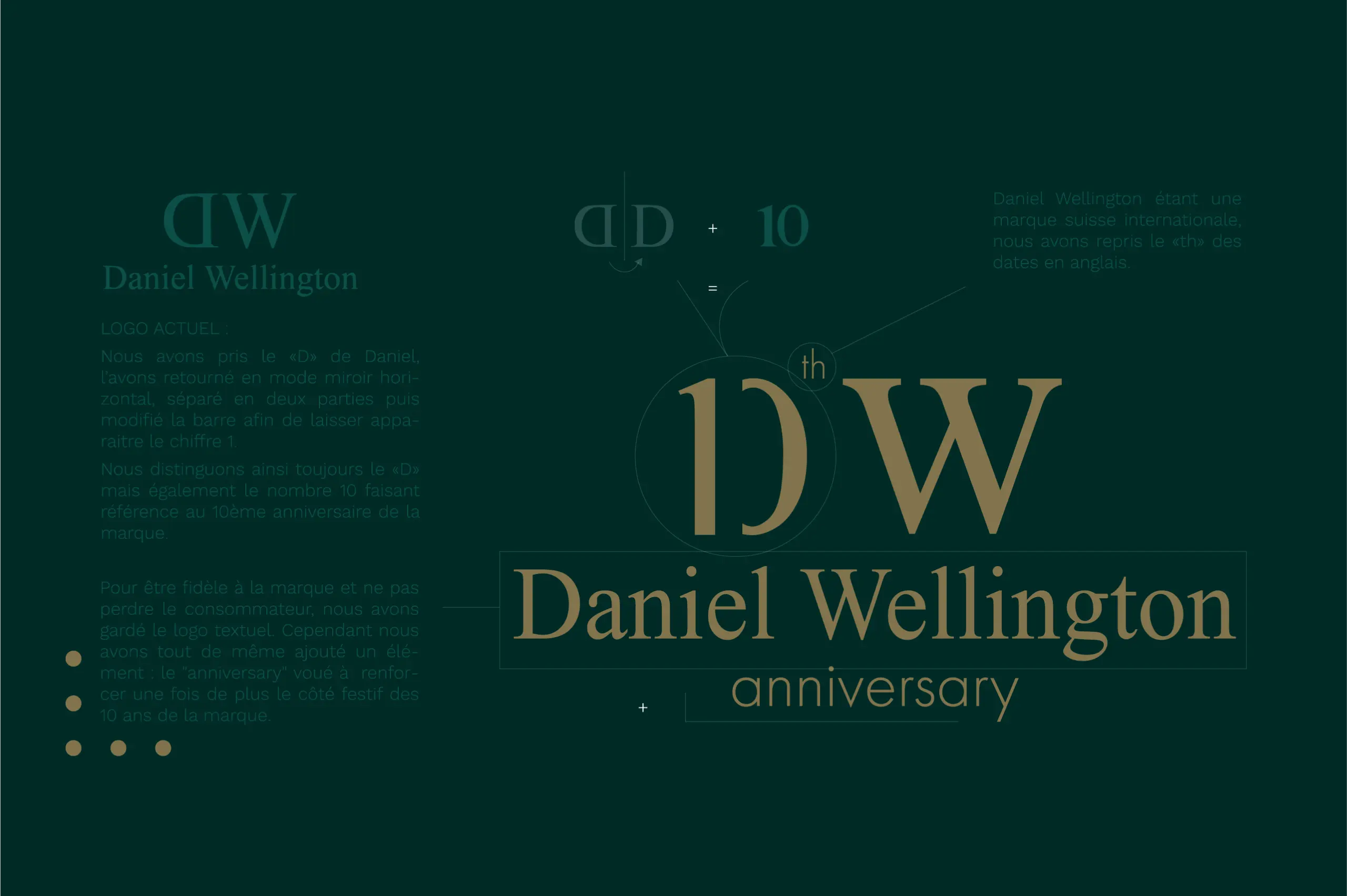 - Logo anniversaire : le “D” de Daniel Wellington se transforme subtilement en chiffre 10