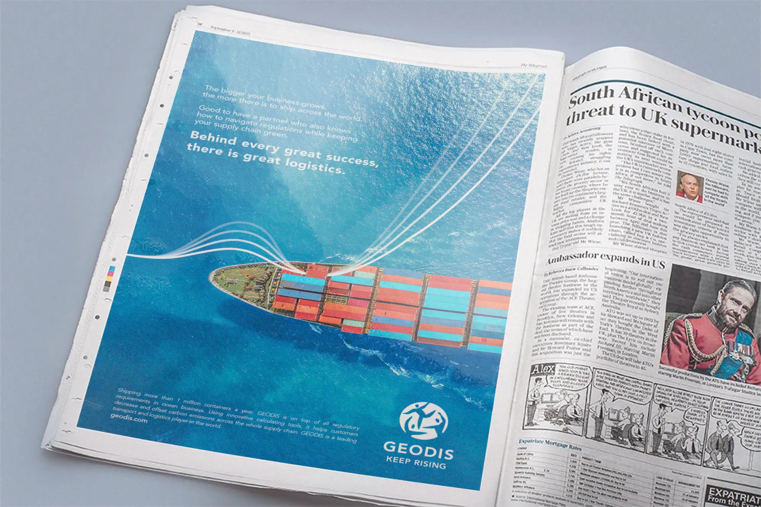 En 2020, Geodis, filiale logistique de la SNCF, lance la campagne internationale « Keep Rising » pour affirmer son rôle stratégique dans la performance des entreprises. Remportée par VMLY&R face à BETC et BBDO, la campagne se déploie en presse et en digital, en France et à l’international.