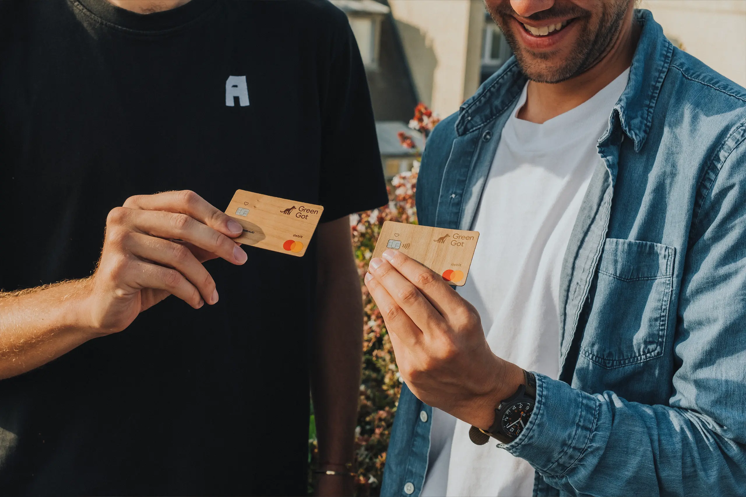 Conception et direction artistique des cartes bancaires écoresponsables (bois, PVC recyclé, version premium). Suivi de production et intégration digitale dans Apple Pay et Google Pay.